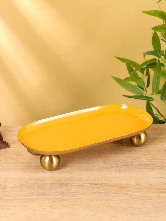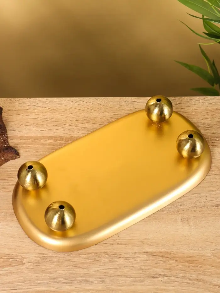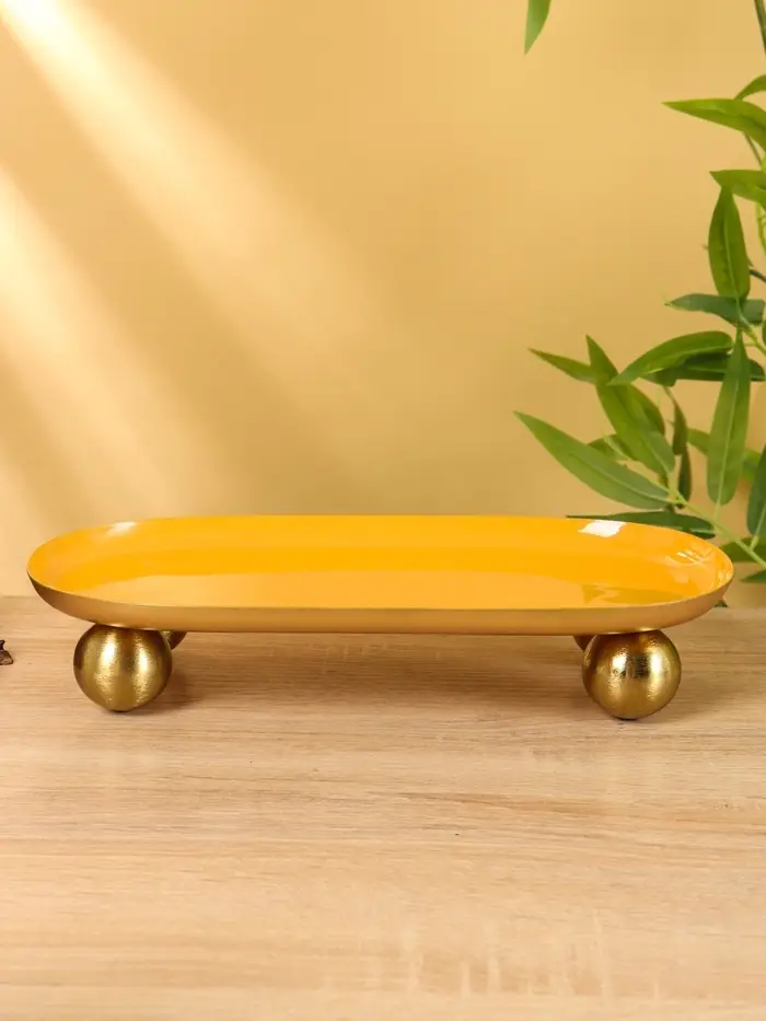 Блюдо сервировочное текстурное на золотых ножках сферах «Песок», 29×15.5×7 +/- 0.5 см
