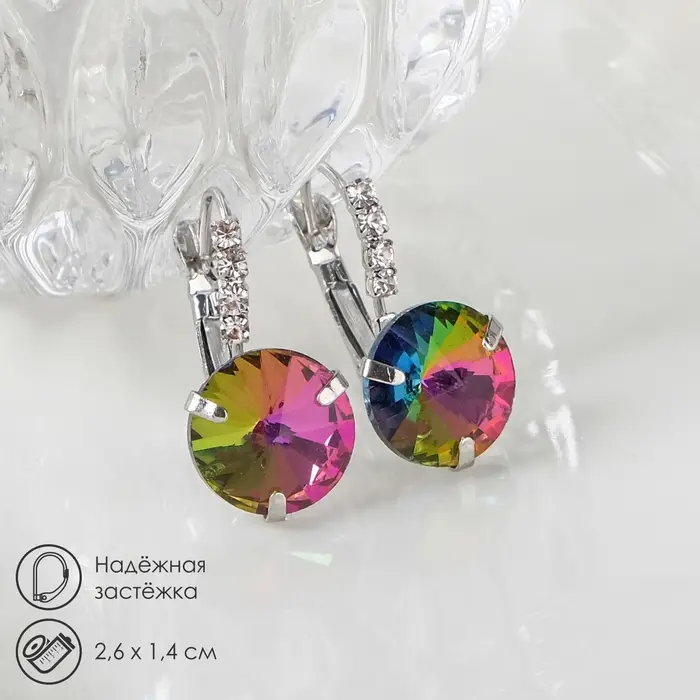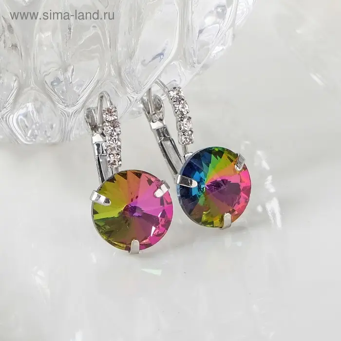 Серьги со стразами «Кристалл» яркий, цвет бело-бензиновый в серебре