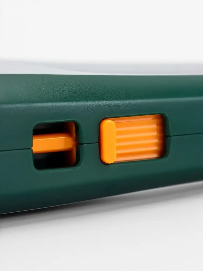 - Ударопрочный корпус: Литый пластик защищает внутренний механизм от падений и влаги. Рулетка сохраняет работоспособность в разных погодных условиях.