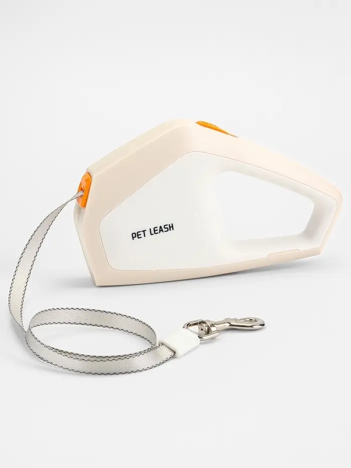 Рулетка - поводок для собак, лента 3 метра, белая, бежевая