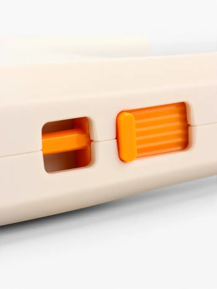 - Сбалансированный корпус: Литой пластик обеспечивает легкость и прочность конструкции. Рулетка комфортно лежит в руке даже при длительном использовании.