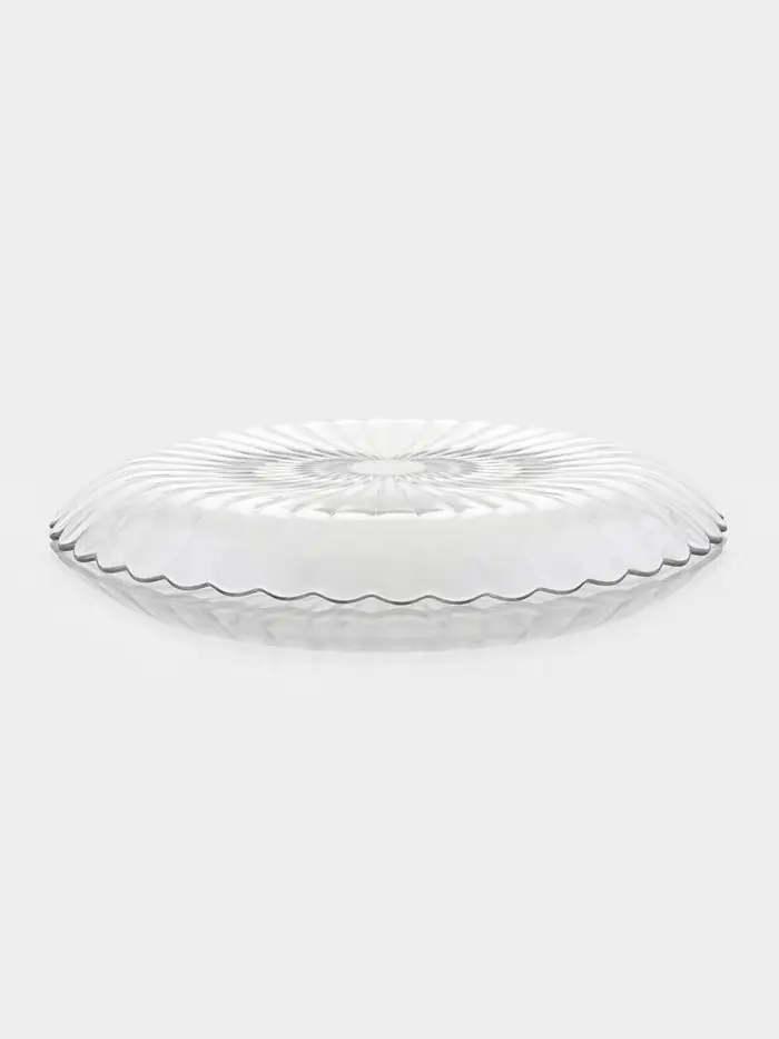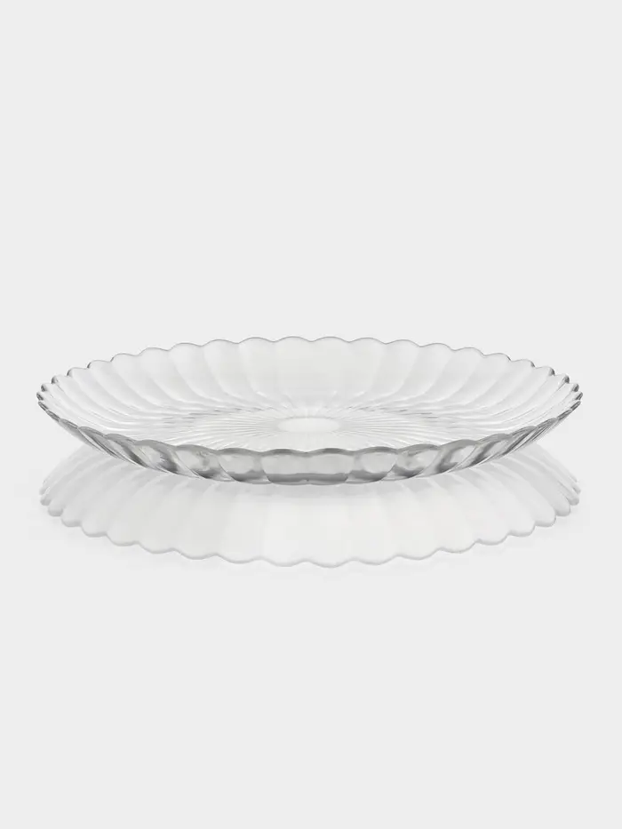 Прозрачная стеклянная тарелка – это минимализм с характером. Её рельефная поверхность ловит свет, добавляя глубину даже самой простой сервировке. Подходит для повседневного использования и подачи блюд, где важна чистота образа.