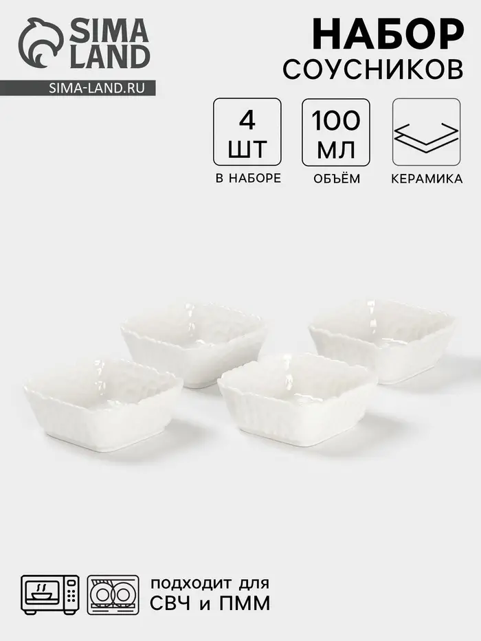 Этот набор керамических соусников предлагает лаконичное решение для сервировки жидких и густых добавок к блюдам. Четыре одинаковых ёмкости объёмом 100 мл подходят для подачи соусов, топпингов, специй или десертных сиропов. Белый цвет создаёт нейтральный фон, который подчёркивает оттенки содержимого.