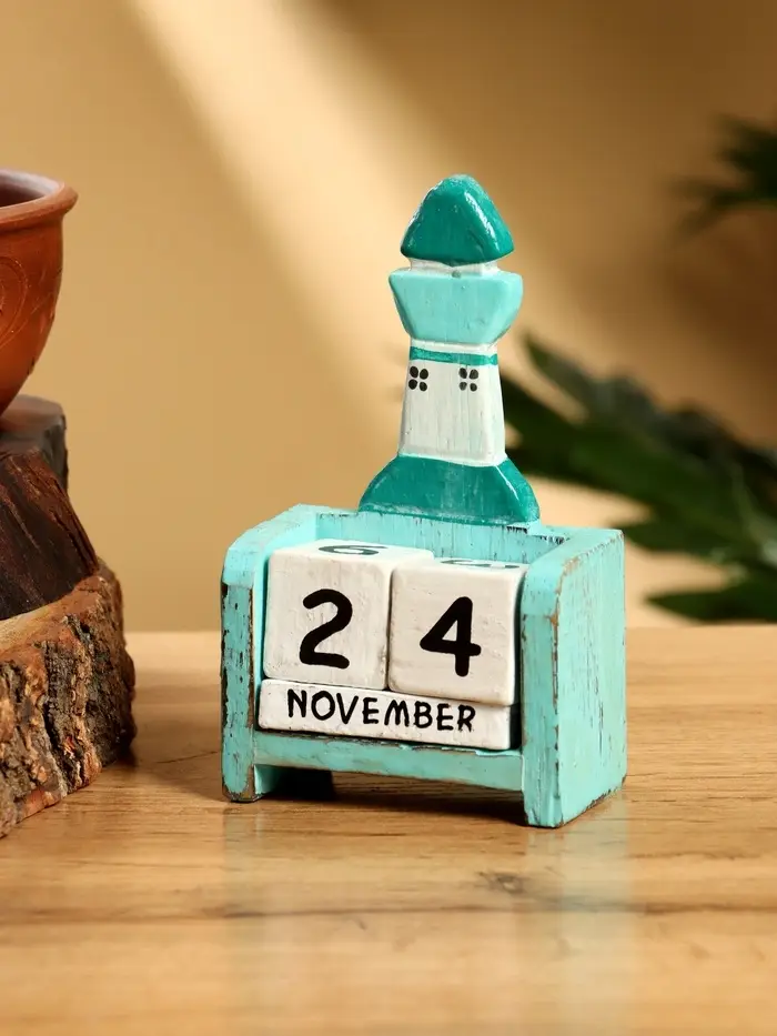 Календарь настольный «Маяк», 7×4×11 см, дерево, бело-бирюзовый