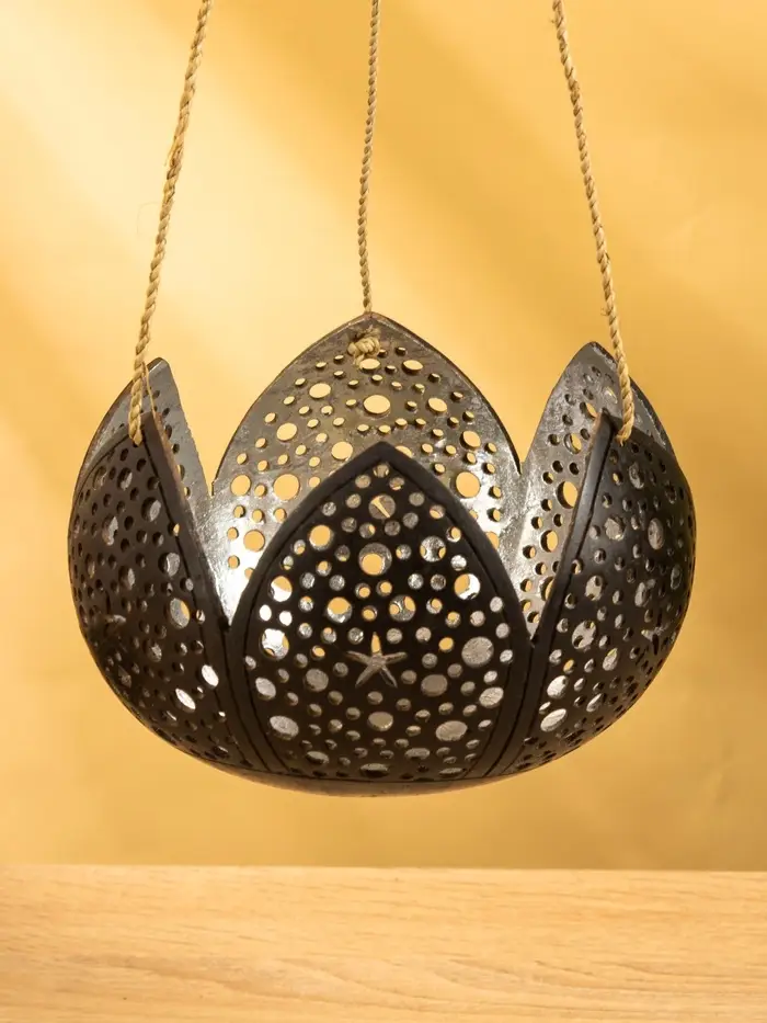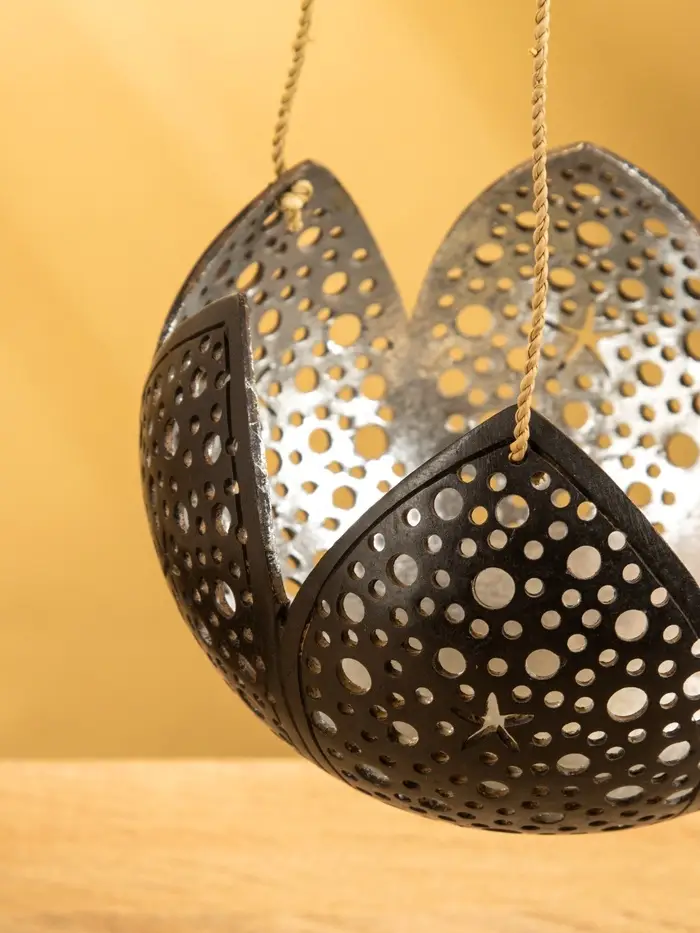 Подсвечник подвесной из кокоса «Бутон», 14×14×10 см, чёрно-серебристый