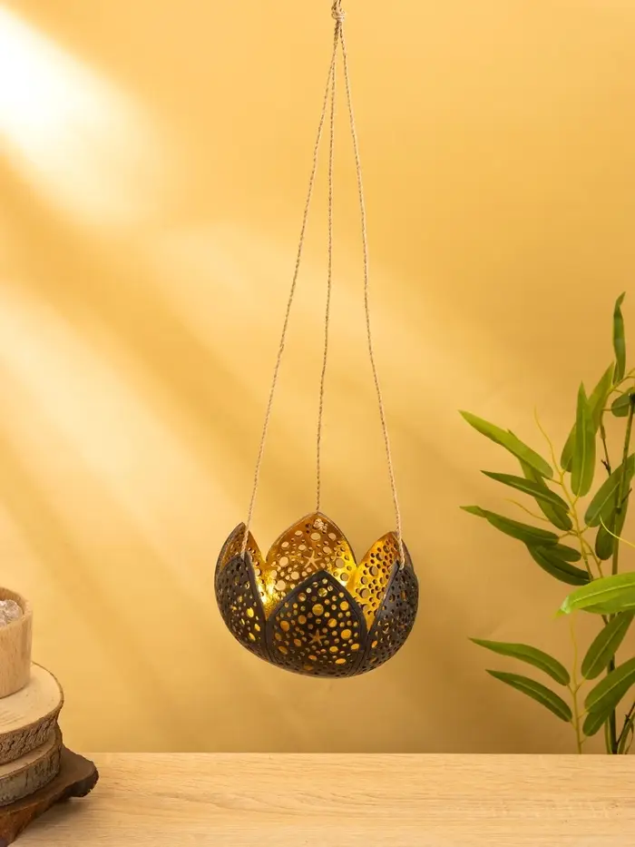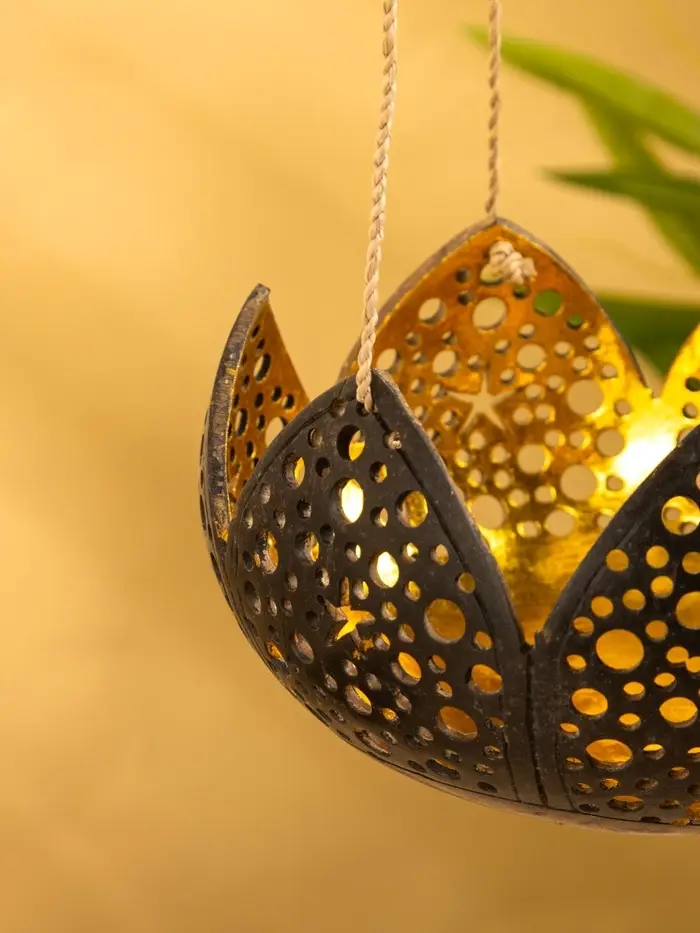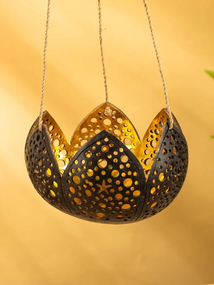 Подсвечник подвесной из кокоса «Бутон», 14×14×10 см, чёрно-золотой