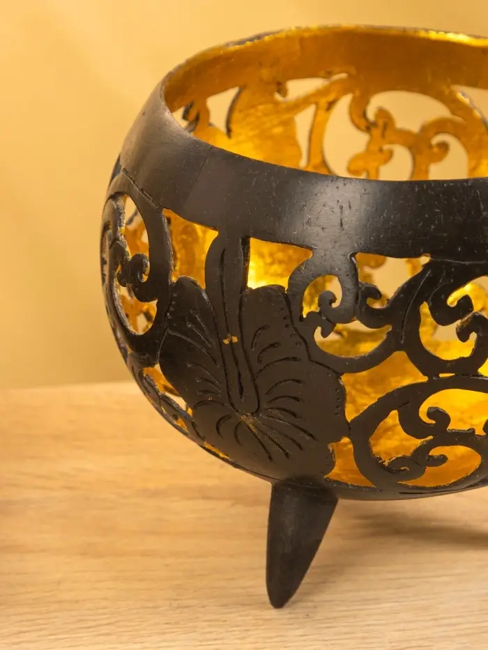 Подсвечник из кокоса, 15×15×13 см, коричнево-золотой