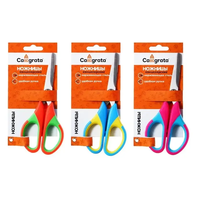 Ножницы канцелярские 14 см Calligrata, пластиковая ручка, микс