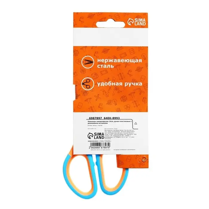 Ножницы канцелярские 14 см, ручки пластиковые с резиновыми вставками, концы острые, МИКС