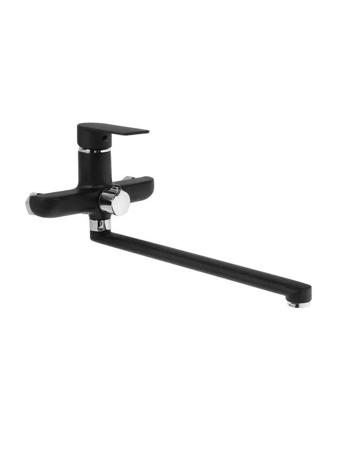 - Удлиненный поворотный излив 350 мм: Излив достает до центра большой ванны для удобного набора воды.