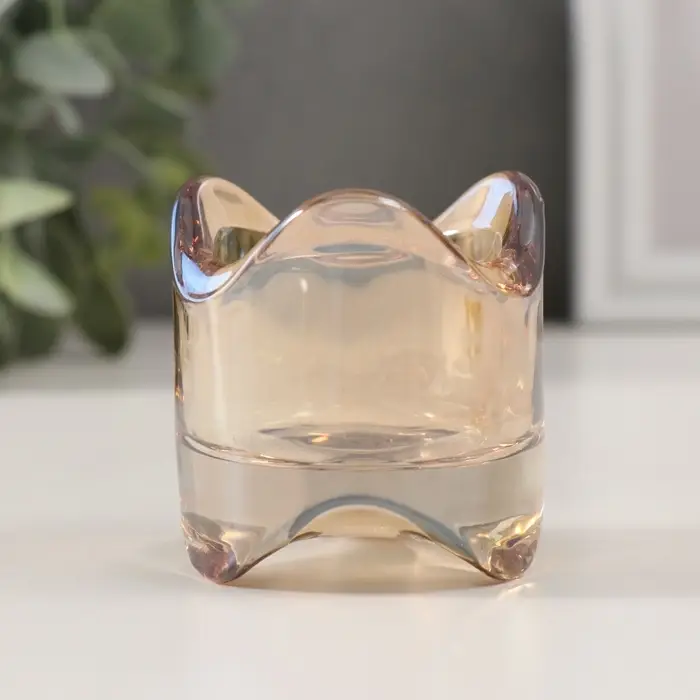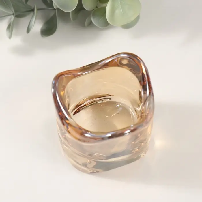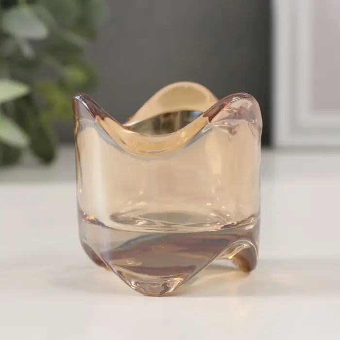 Подсвечник стекло на 1 свечу "Столбик с волной" прозрачный карамель 5,8х5,8х6 см