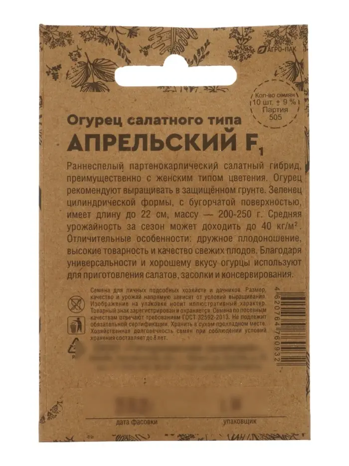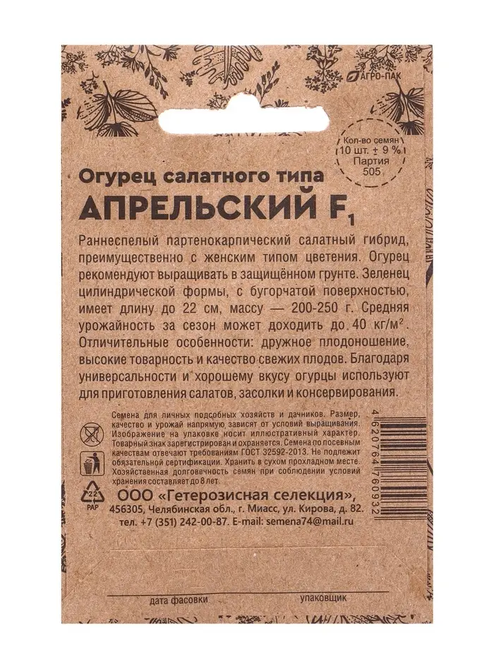 Семена Огурец «Апрельский», F1, раннеспелый, партенокарпический, 0.25 г, «Уральский дачник»