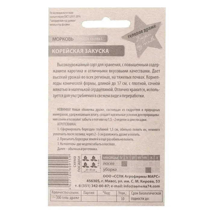 Семена Морковь "Корейская закуска", 250 гель-драже