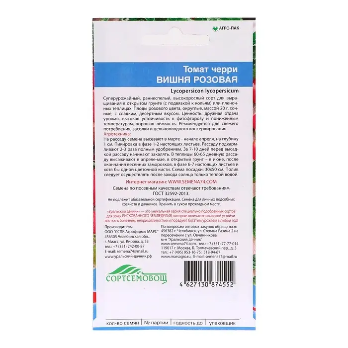 Семена Томат «Вишня Розовая, черри», 20 шт., «Уральский Дачник»