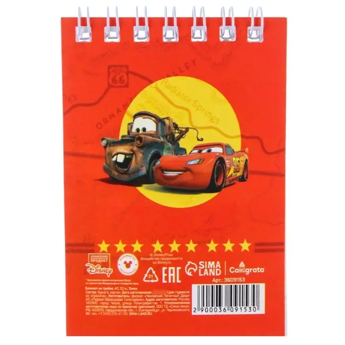 Блокнот А7, 32 листа, на гребне, «Тачки», Disney