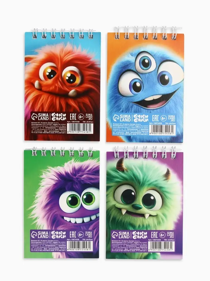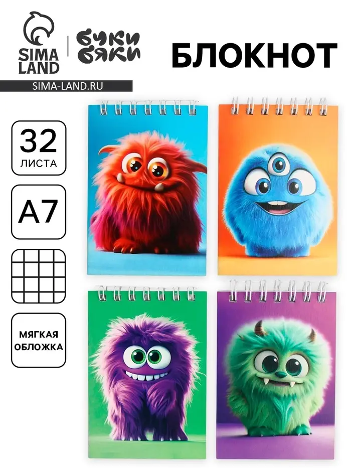 Блокнот А7, 32 листа «Монстрики» МИКС