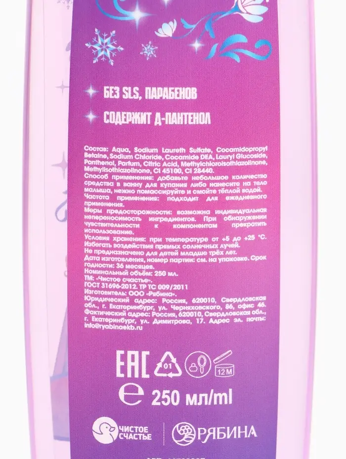 Состав: Aqua, Sodium Laureth Sulfate, Cocamidopropyl Betaine, Sodium Chloride, Сocamide DEA, Lauryl Glucoside, Panthenol, Parfum, Citric Acid, Methylchloroisothiazolinone, Methylisothiazolinone, Cl 45100, Cl 28440.