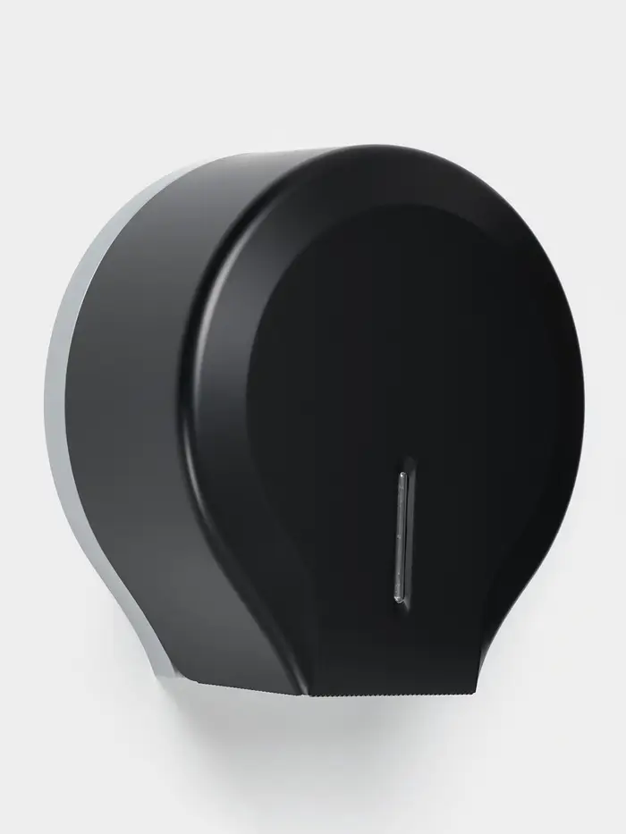 Настенный диспенсер для туалетной бумаги с втулкой 4 см. Практичное решение для поддержания порядка и гигиены. Комплектуется креплениями и ключом для простого монтажа. Универсальная конструкция подходит для стандартных и джамбо рулонов. Черный матовый пластик устойчив к влаге.