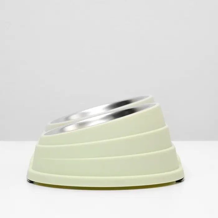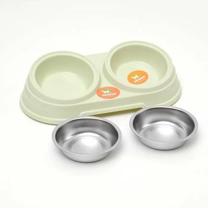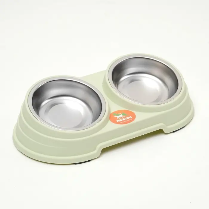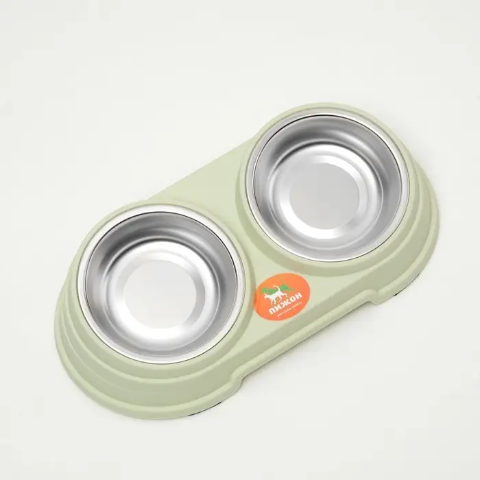 Миска металлическая двойная наклонная на пластиковом основании, 28.5×15×7 см, зелёная