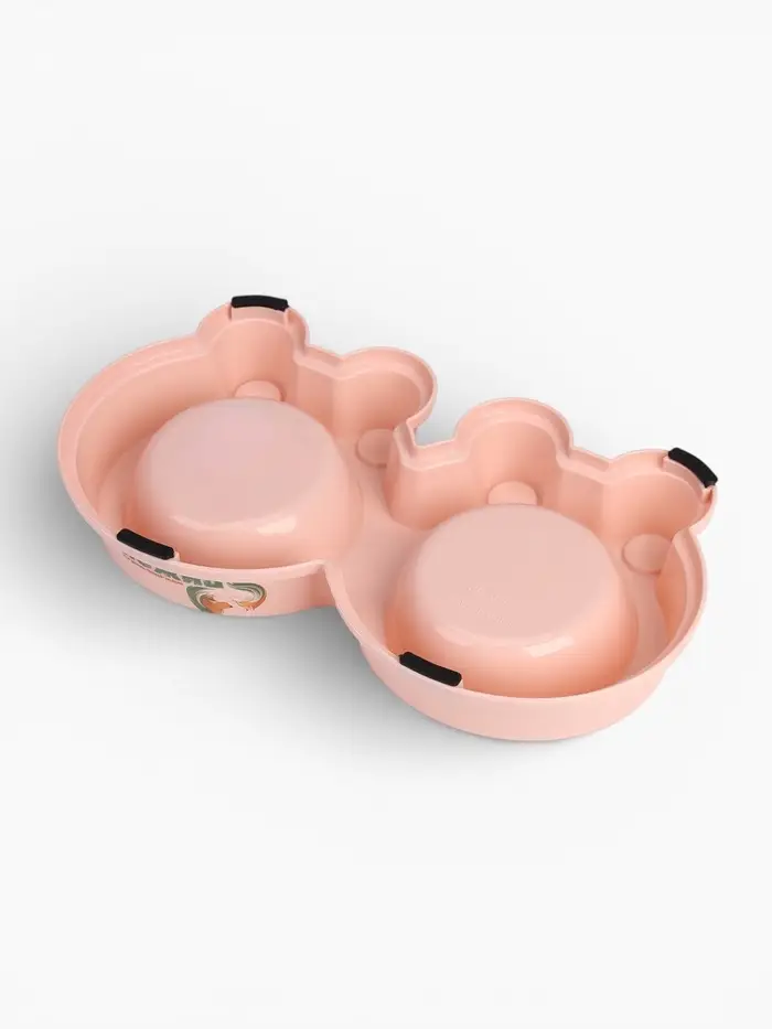 Миска двойная «Мур-мяу» 22.5 см × 13 см × 6 см, 0.2 л, пластик, розовая