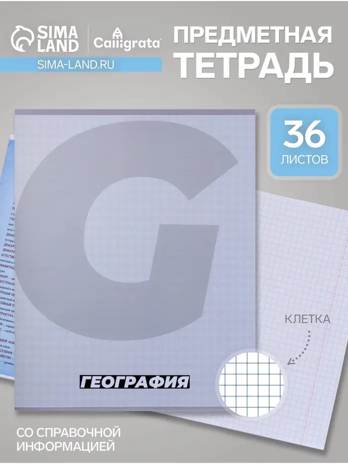 Тетрадь предметная, 36 листов в клетку, Calligrata «MonoTone. География», серые листы