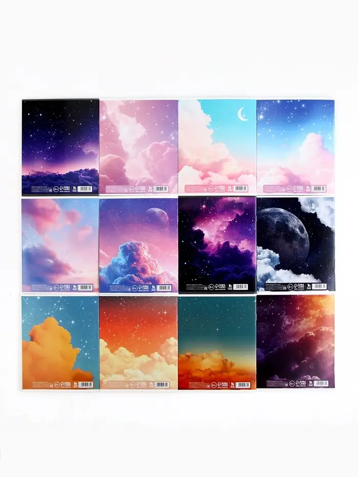 Тетради в клетку, предметные, 48 л., набор из 12 шт., блок №1, Space