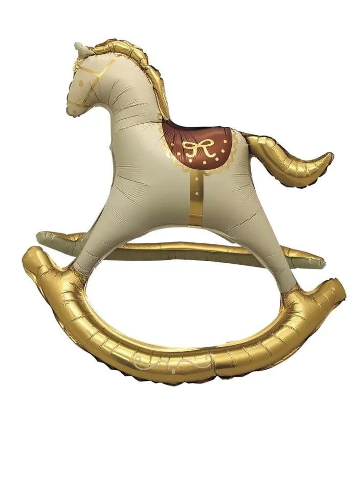 Воздушный шар фольгированный 43" "Лошадка-качалка", золото, кремовый, под воздух