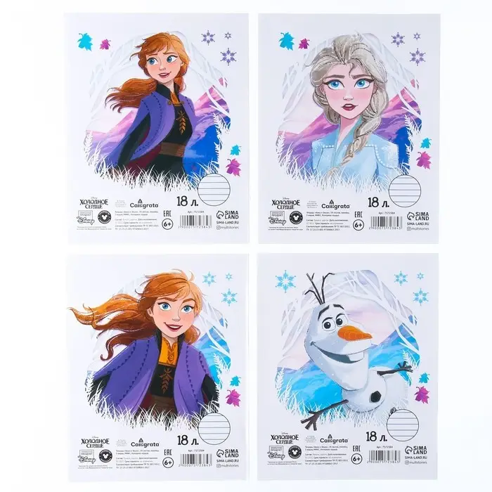 Тетрадь в линейку 18 листов, 4 вида МИКС, обложка мелованная бумага, Холодное сердце