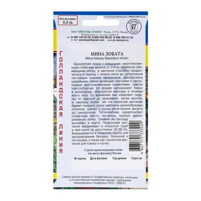 Семена цветов Мина "Лобата", 0,2 гр