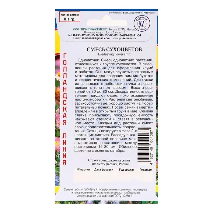 Семена цветов Смесь сухоцветов, 0,1 гр