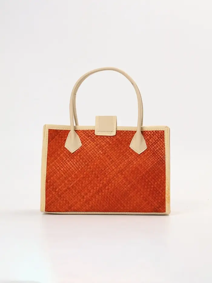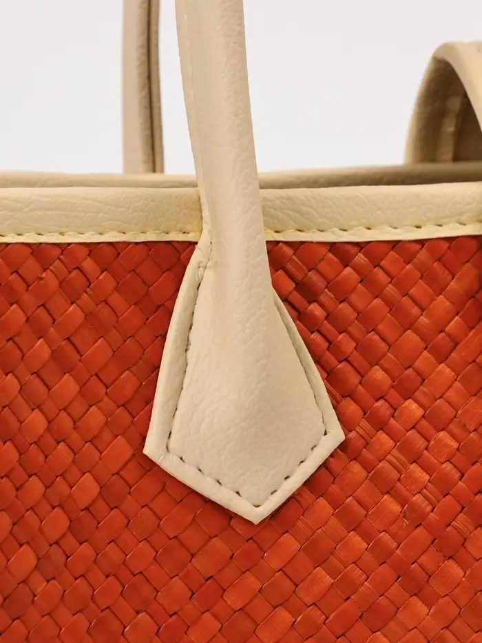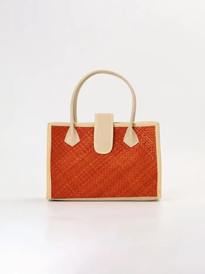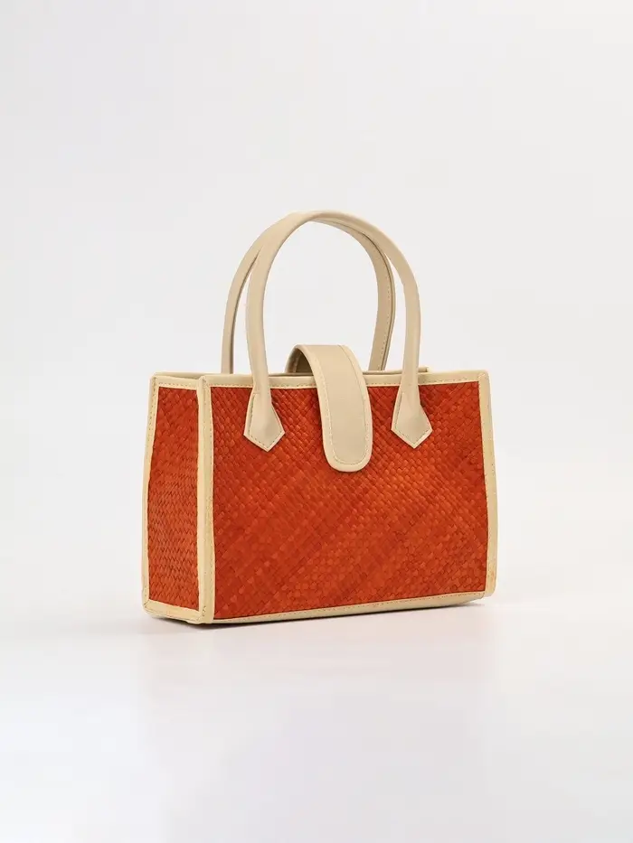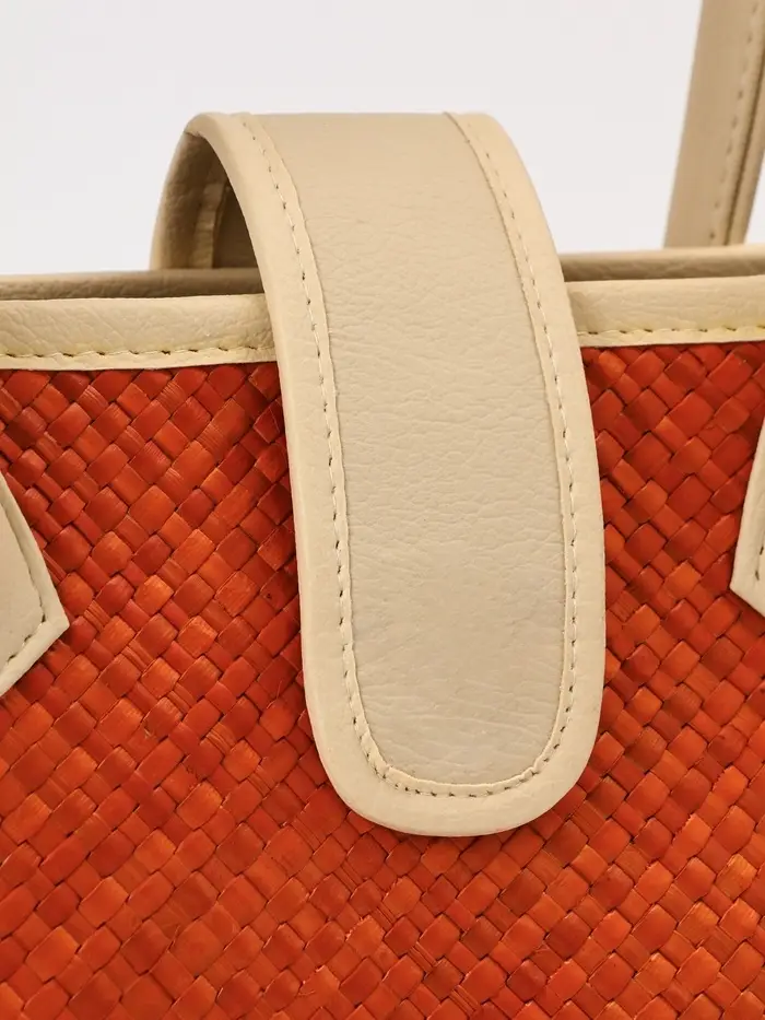 Стиль, сотканный из природы. Плетёная сумка из пандана с магнитной застёжкой — это практичный аксессуар среднего размера, который сочетает в себе натуральную эстетику ручной работы и функциональность для повседневного использования. Её фактура и тёплый бежево-оранжевый оттенок создают образ лёгкой летней элегантности.