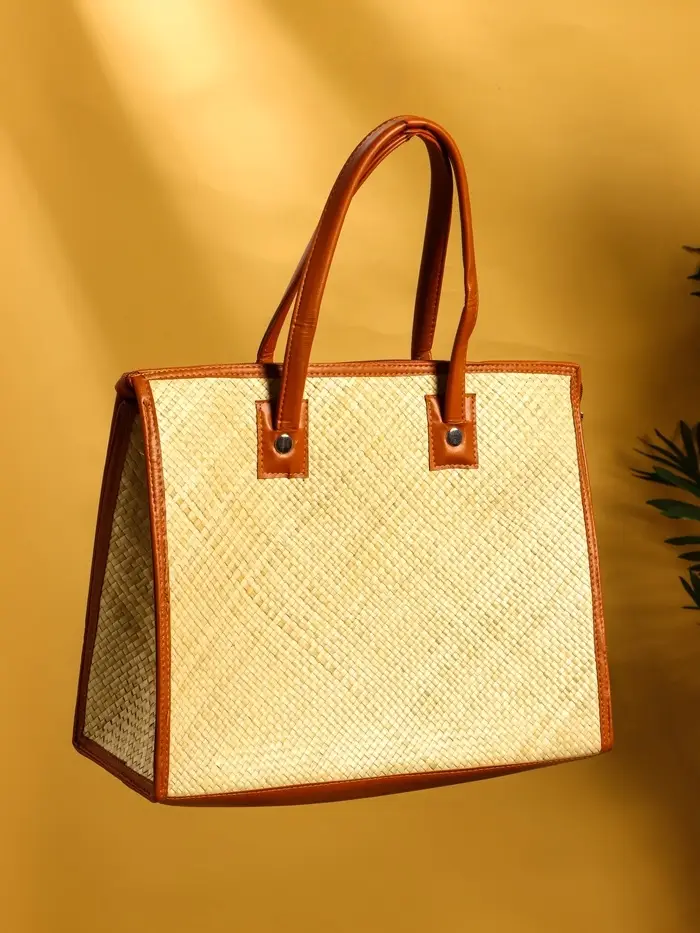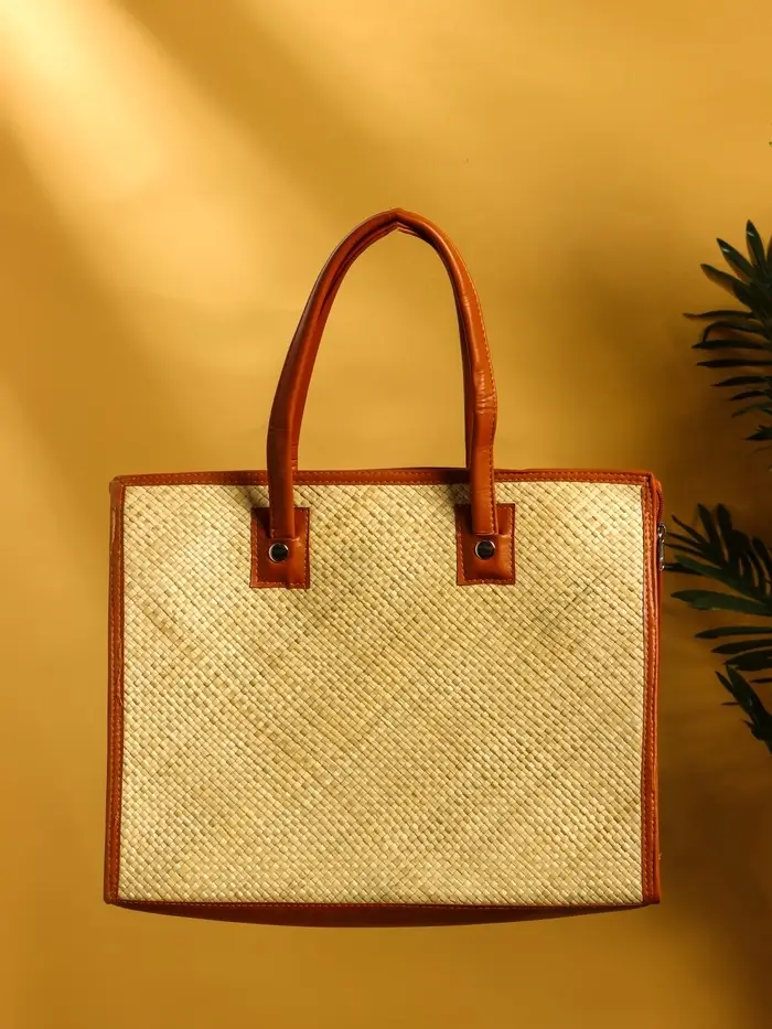 Сумка плетёная на молнии из пандана 41х16х50 см, светло-коричневый