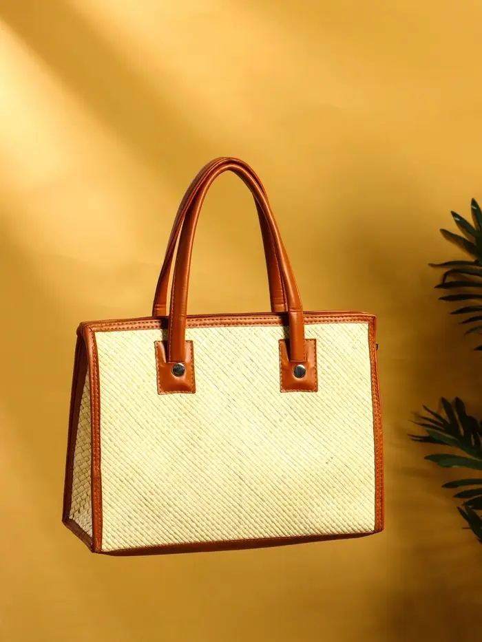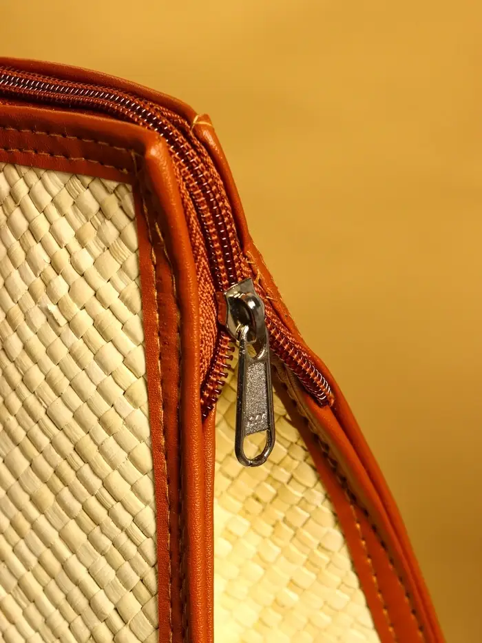 Сумка плетёная на молнии из пандана 35х12х40 см, бежево-коричневый