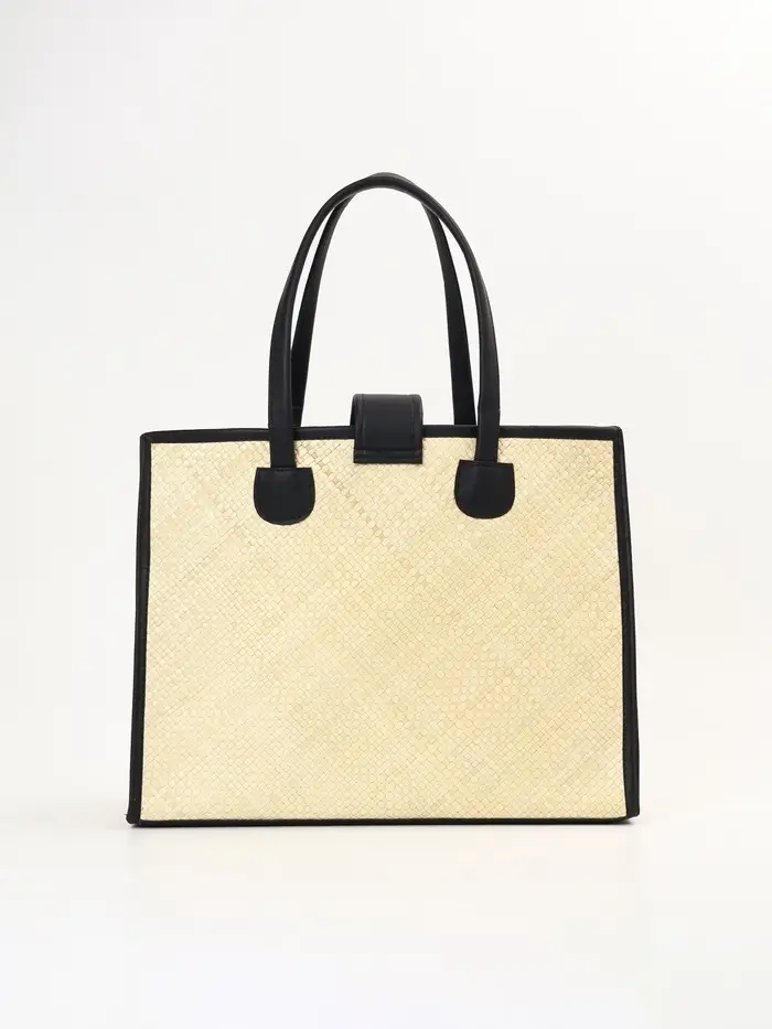 Сумка плетёная на застёжке из пандана, 41×16×50 см, бежево-чёрная