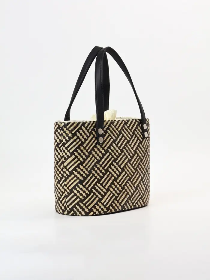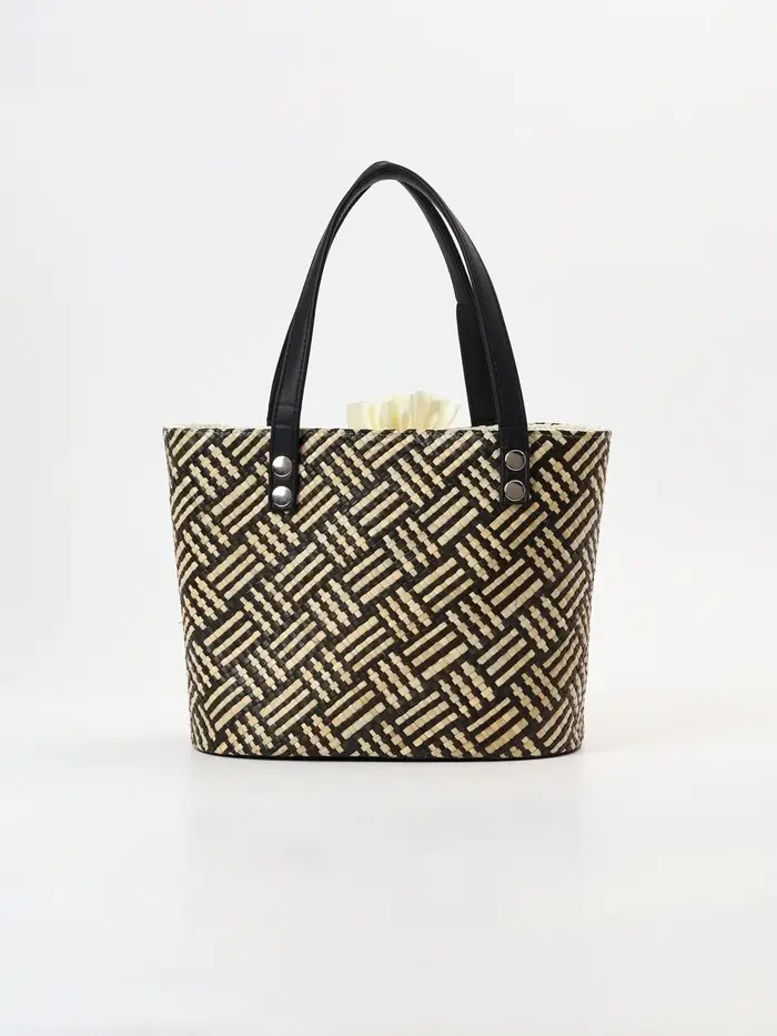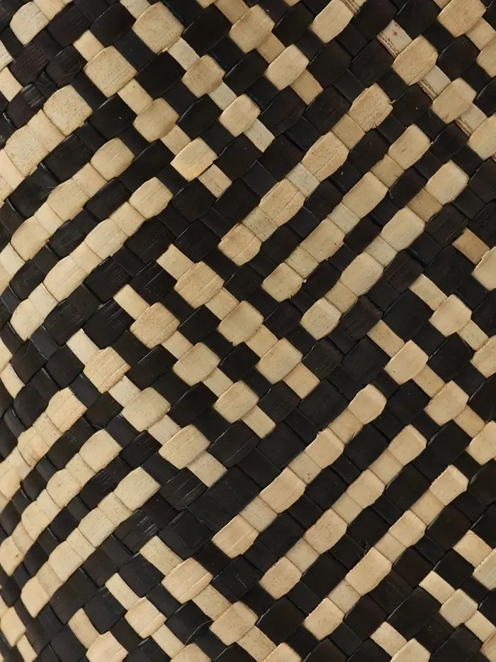 - Натуральный материал пандан: Сумка сплетена вручную из прочных и гибких листьев пандановой пальмы. Каждое изделие обладает уникальным рисунком плетения и естественным цветовым градиентом от бежевого к коричневому, что подчеркивает его эксклюзивность и связь с природой.