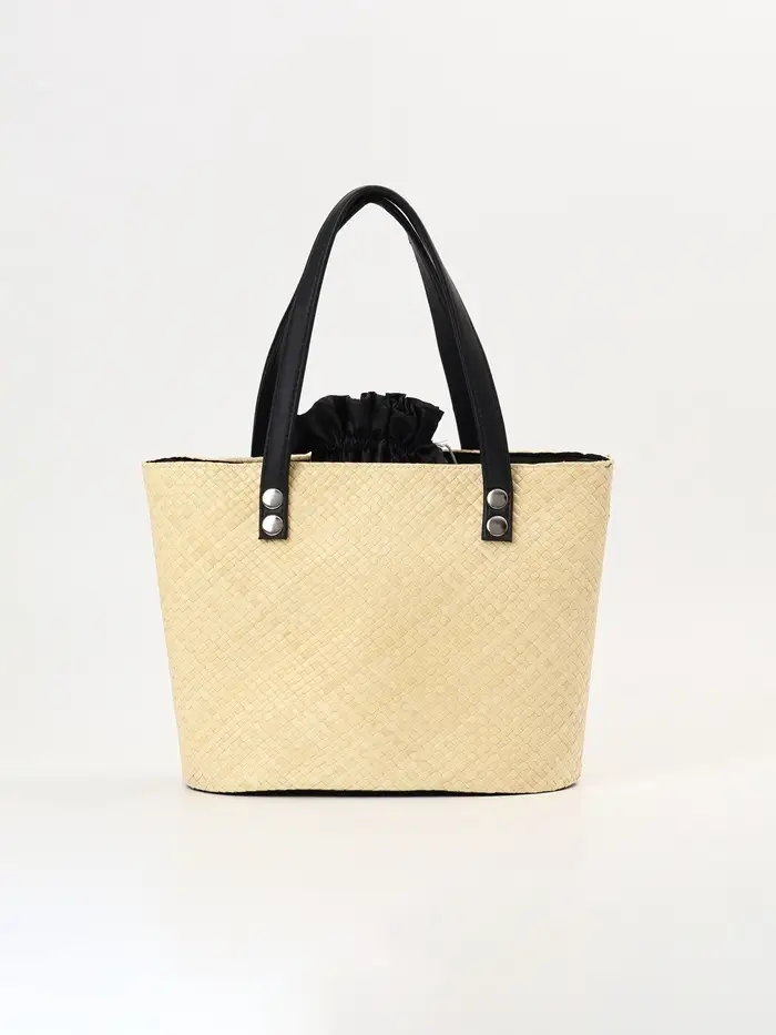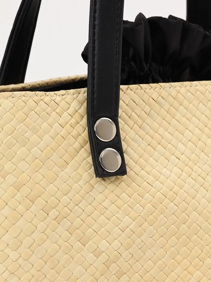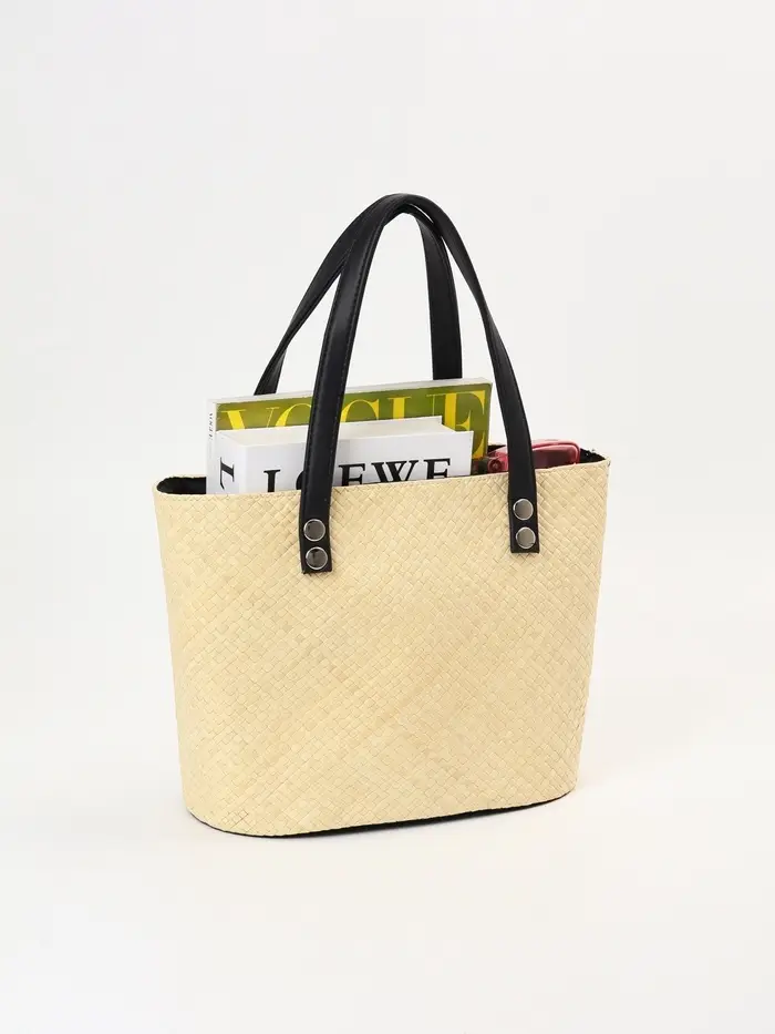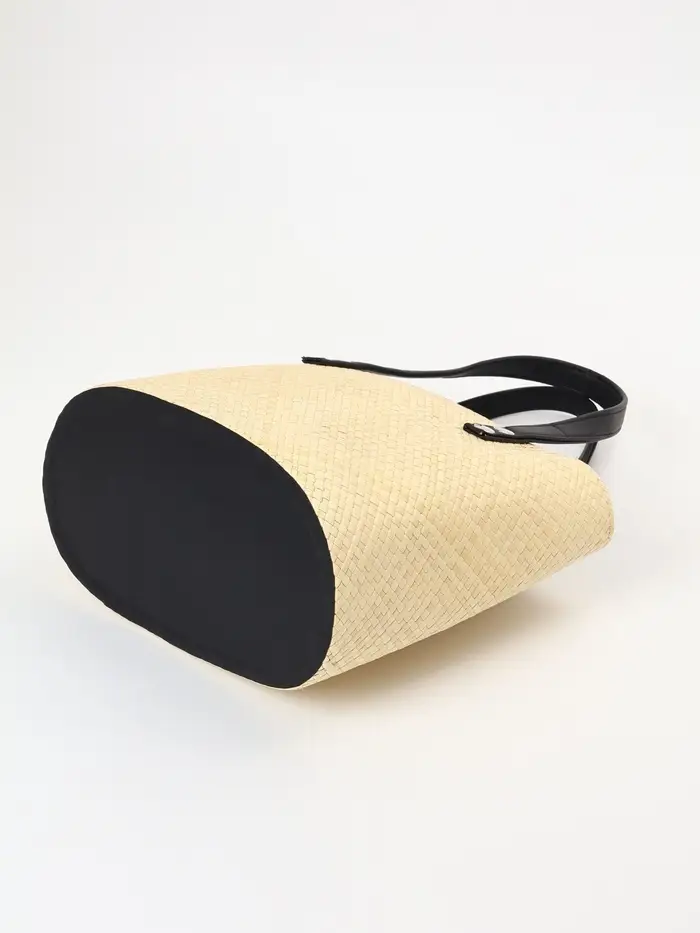 - Универсальный дизайн: Сочетание бежевого и чёрного в плетении делает аксессуар нейтральным. Он гармонирует с одеждой в стиле casual, летними платьями и даже сдержанными городскими луками, добавляя образу текстурный акцент.