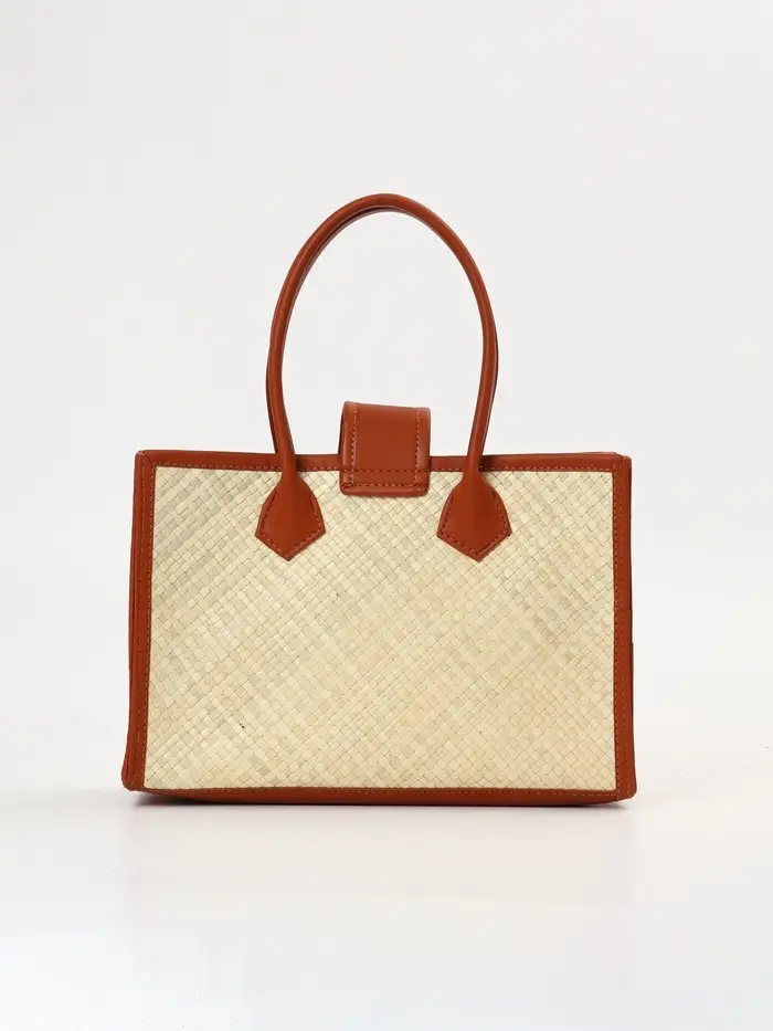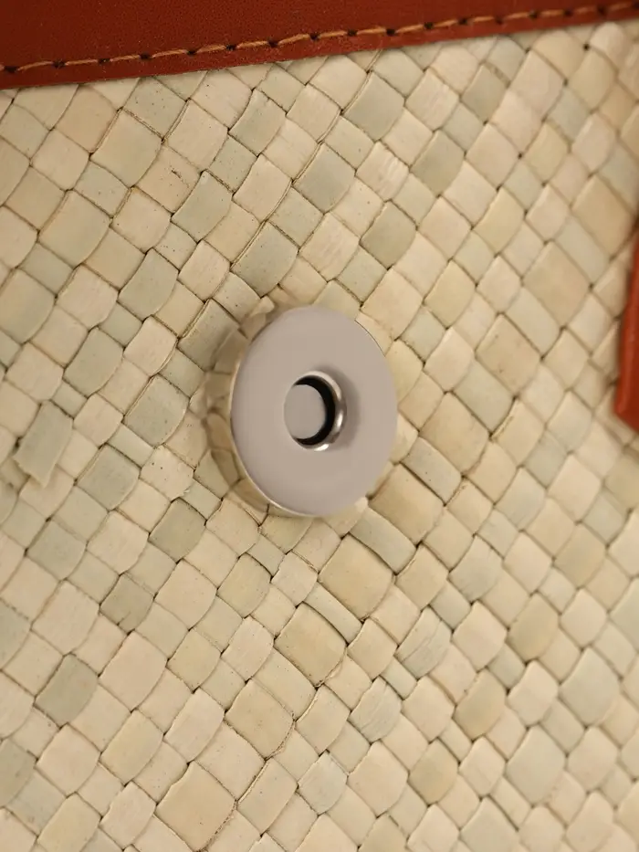 Сумка из пандана бежево-коричневого оттенка — лаконичный аксессуар для женщин, ценящих натуральные материалы и умеренную эстетику. Средний размер и магнитная застёжка делают её удобной для повседневного ношения: всё важное — под рукой, ничего лишнего — на виду.