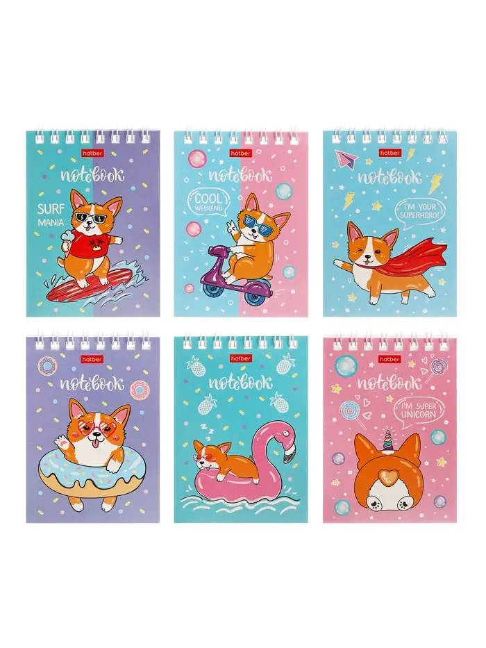 Блокнот 40л А6 клетка Hatber "Забавные корги", на гребне, обл мел карт