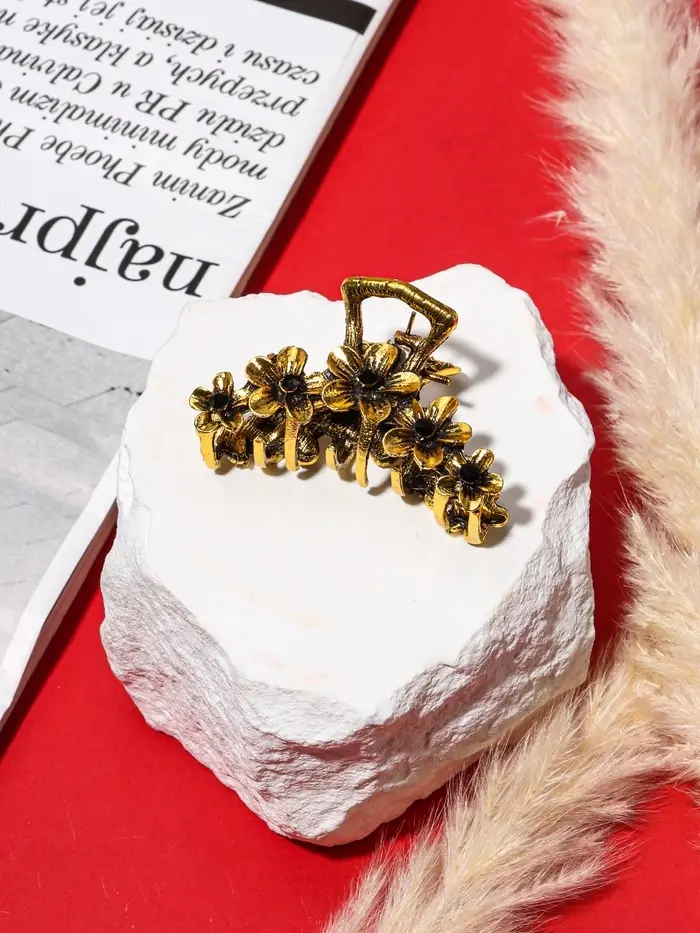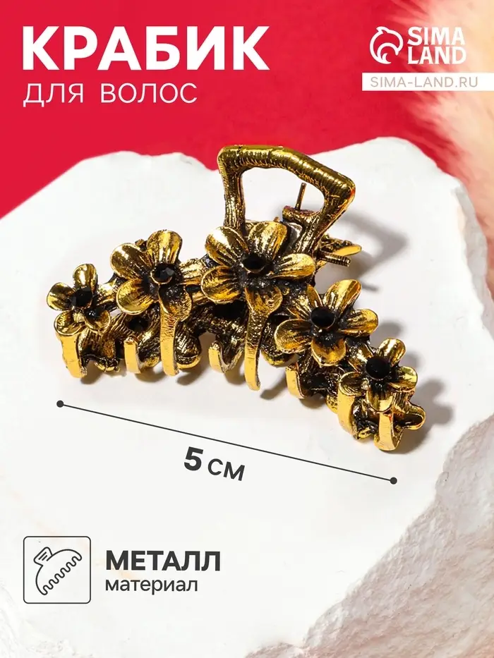 Крабик для волос «Валери», лепестки, 7 см, золотистый