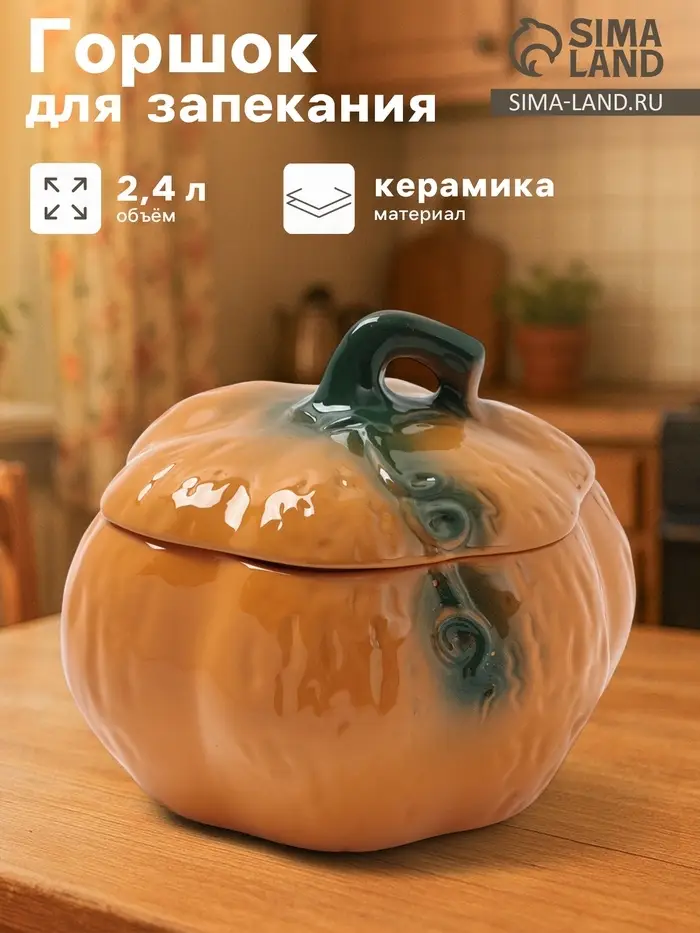 Горшок для запекания Борисовская керамика «Тыква», 2.4 л, оранжевый