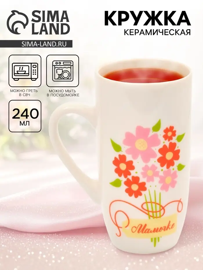 Керамическая кружка «Мамочке» — это качественный и удобный аксессуар для подачи различных напитков.