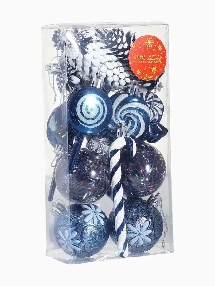 Ёлочные игрушки набор 17 шт. «Ярмарка волшебства» 6 см, синий