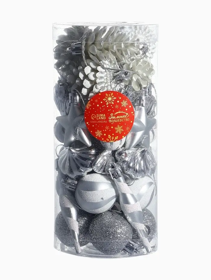 Ёлочные игрушки набор 33 шт. «Праздничный хоровод» 4 см, серебро
