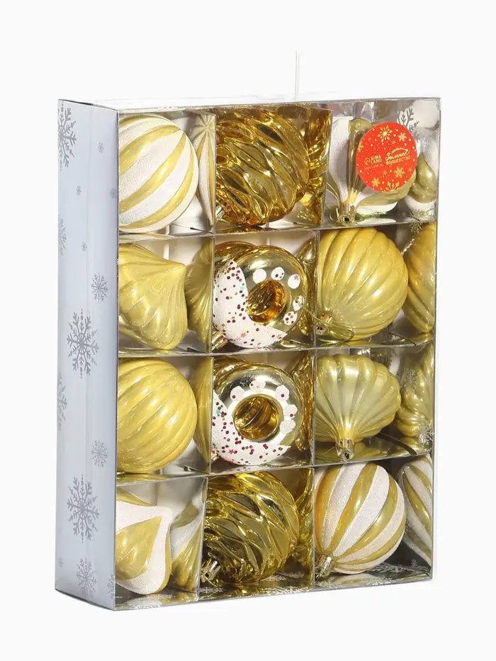 Набор из 16 золотистых ёлочных шаров диаметром 8 см воплощает в себе тепло и сияние праздничных традиций, вдохновлённых атмосферой зимних ярмарок и волшебных историй. Пластиковые украшения с резным рисунком и однотонной поверхностью привносят в интерьер нотку элегантности и роскоши, подчёркивая красоту естественного света и создавая ощущение гармонии. Комплект идеально сочетается с декором ёлок различных размеров, помогая оформить пространство, где каждый элемент играет роль в формировании уюта и праздничного настроения. Благодаря своему дизайну, эти шары отражают мерцание гирлянд, усиливая чувство волшебства и напоминая о моментах радости, когда семья собирается вместе у ярко украшенной ёлки.