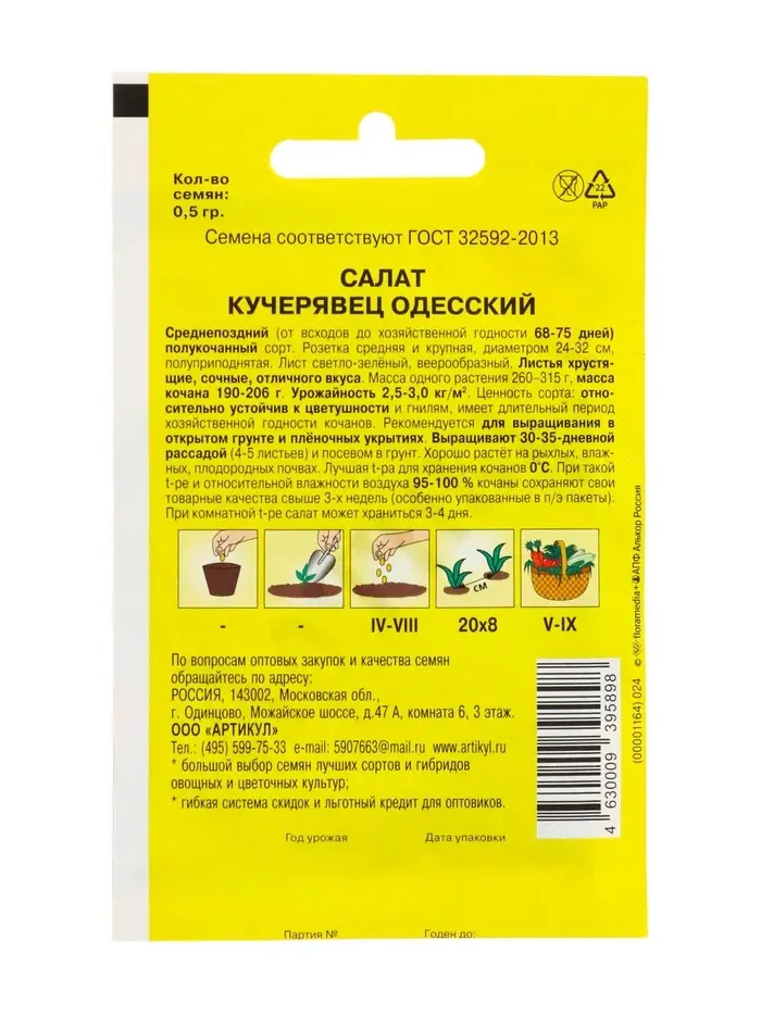 Семена Салат "Кучерявец одесский" среднепоздний, 0,5 г