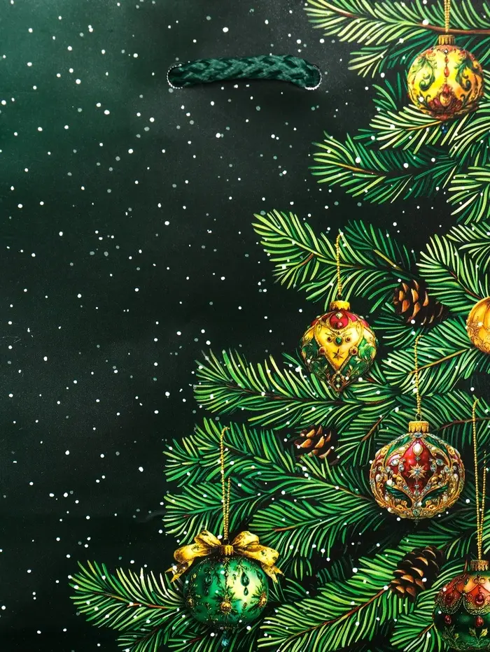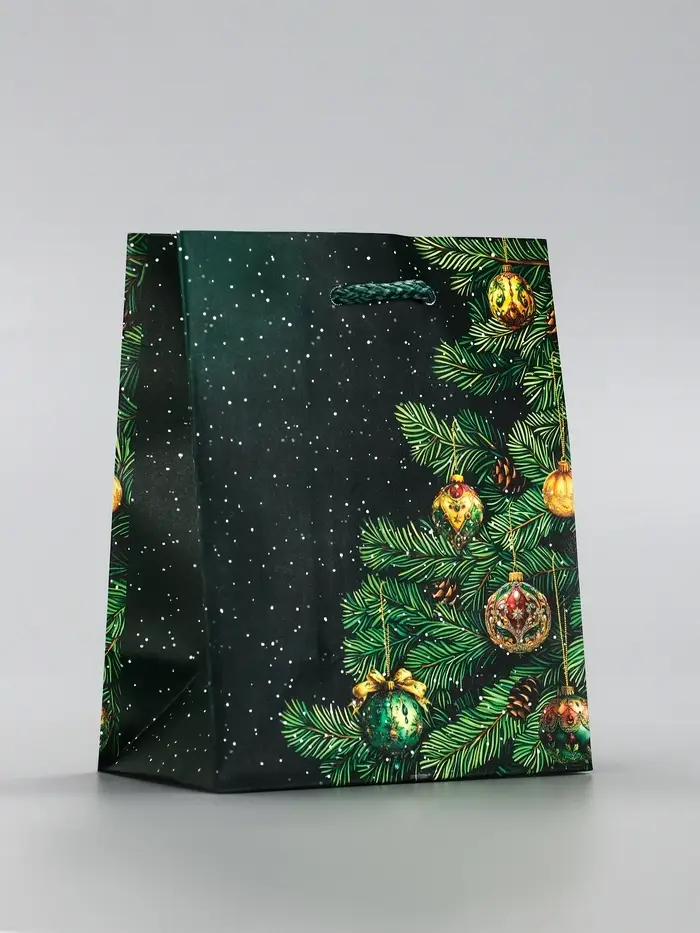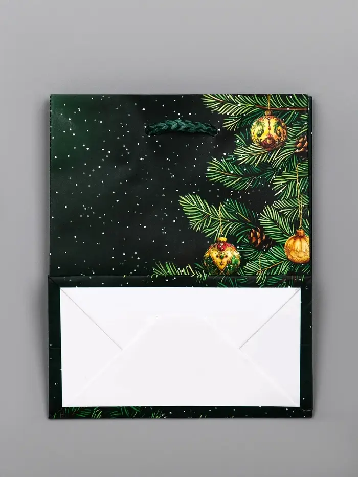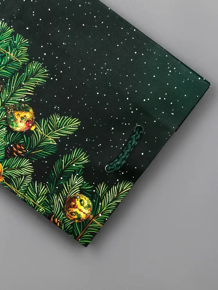 Пакет подарочный новогодний ламинированный, «Ветки елки» , 11.5×6.5×14.5 см