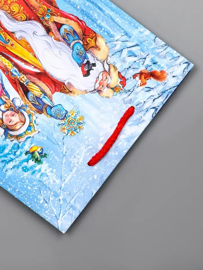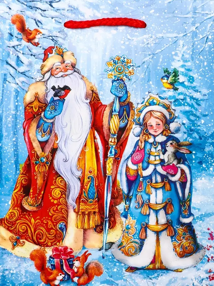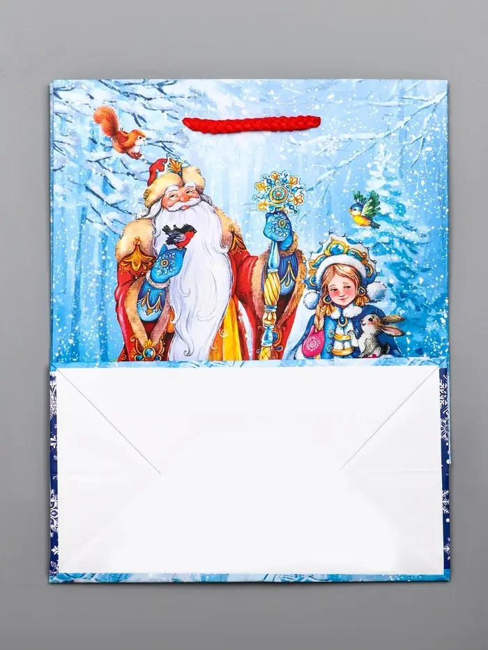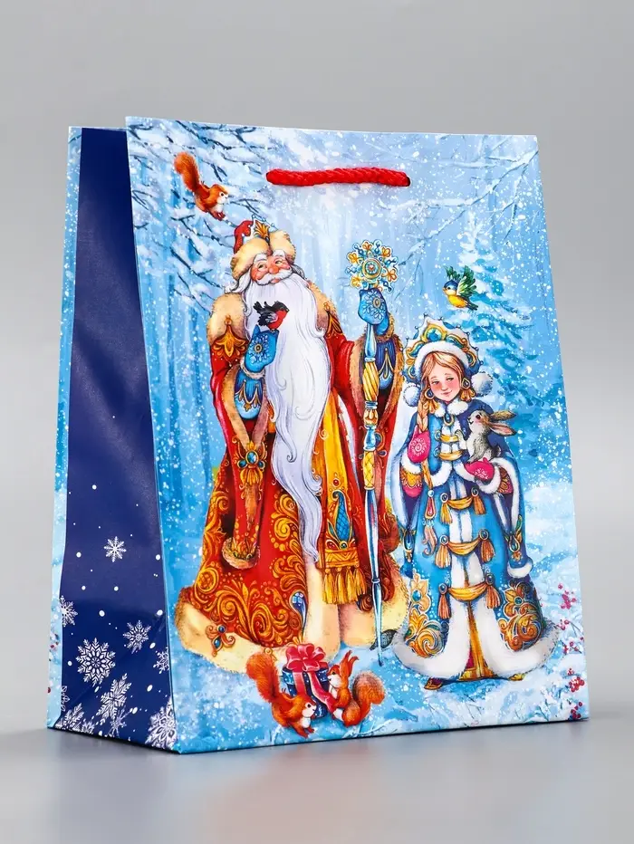 Пакет подарочный новогодний ламинированный, «Дед Мороз и Снегурочка» , 18×10×22.3 см