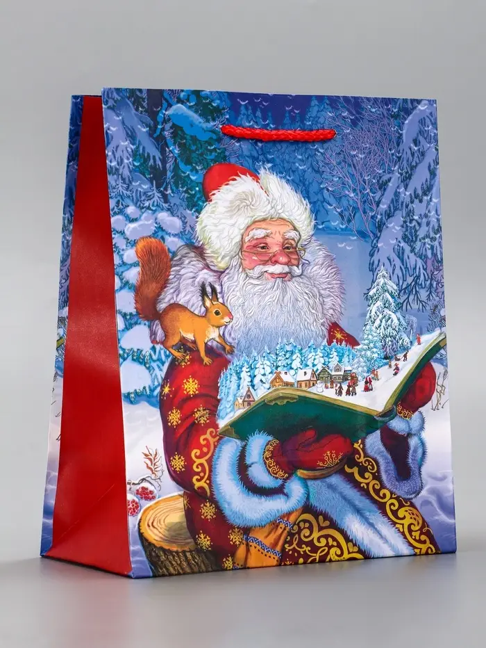 Пакет подарочный новогодний ламинированный, «Дед мороз» , 18×10×22.3 см