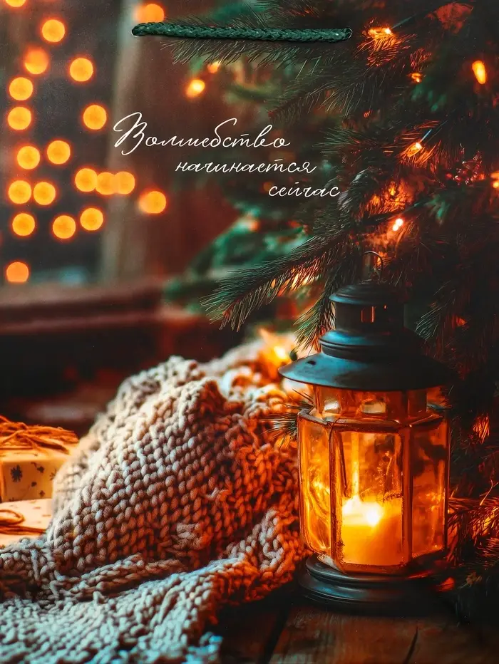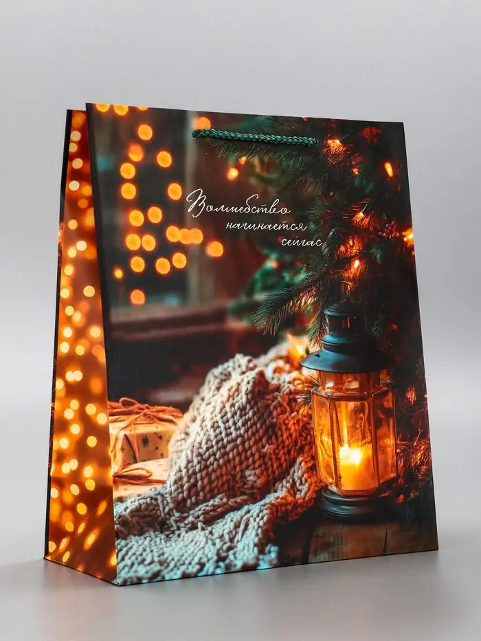 Пакет подарочный новогодний ламинированный, «Домашний уют Новыго Года» , 26×12×32 см