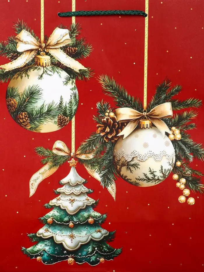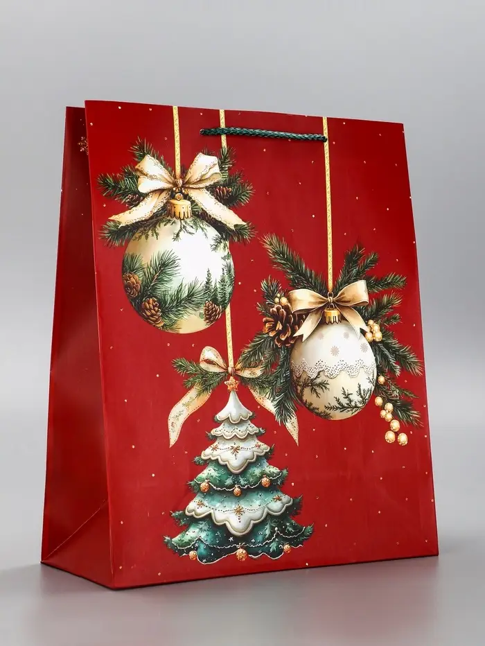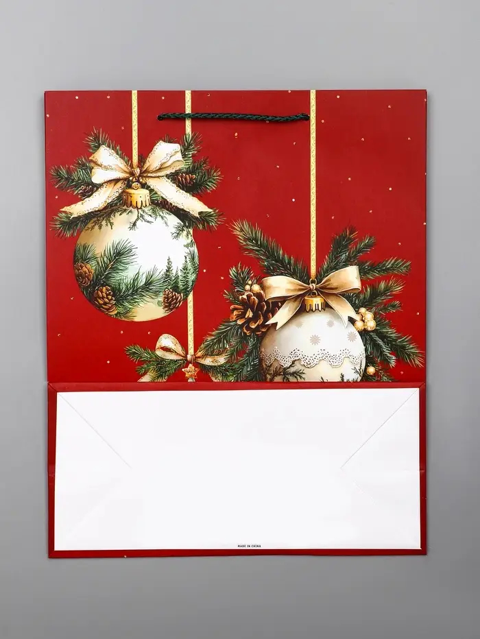 Пакет подарочный новогодний ламинированный, «Новогодние игрушки» , 26×12×32 см
